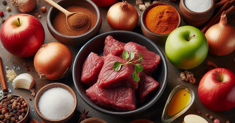 このソースは、長時間かけて煮込むことで、素材の旨みを最大限に引き出したもの。牛肉はもちろん、玉ねぎやにんじん、りんごなどの野菜も、じっくりと煮込むことで、甘みと旨みを凝縮させています。
